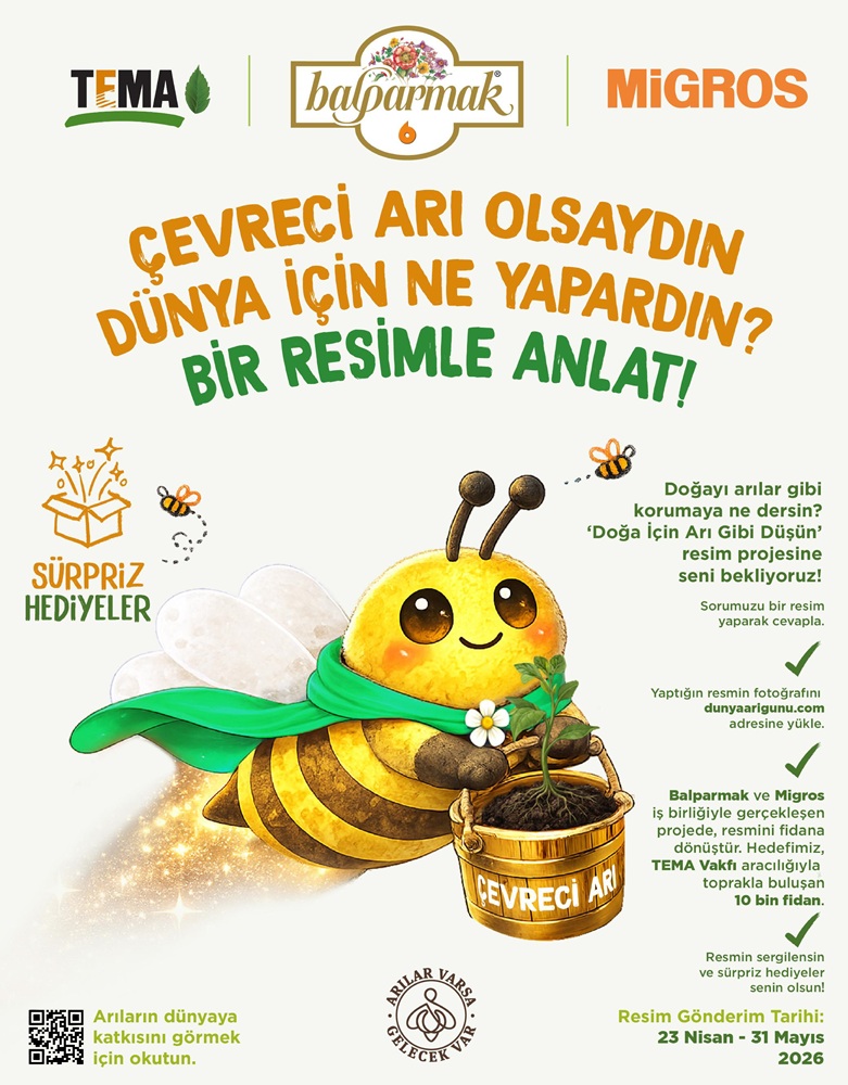 Balparmak, Migros ve TEMA Vakfı iş birliğiyle hayata geçirdiği “Doğa İçin Arı Gibi Düşün” projesinin ikinci dönemini başlattı. 23 Nisan’da başlayan proje kapsamında çocukların hazırladığı resimler, doğaya fidan olarak geri dönecek. Bu yıl da 10 bin fidanlık hatıra ormanı oluşturulması hedefleniyor.