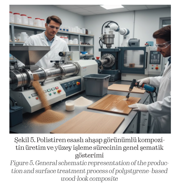 Polistiren (PS), düşük yoğunluğu, iyi akışkanlığı, boyutsal kararlılığı ve enjeksiyon kalıplama ile ekstrüzyon gibi endüstriyel üretim yöntemlerine uygunluğu nedeniyle yaygın olarak kullanılan bir termoplastiktir [3]. Özellikle genel amaçlı polistiren (GPPS), rijit yapısı ve yüzey kalitesi sayesinde dekoratif ve yapısal uygulamalarda tercih edilmektedir. Bununla birlikte, PS’nin darbe dayanımının nispeten düşük olması ve doğal estetik sunmaması, ahşap benzeri uygulamalarda kullanımını sınırlamaktadır [4].