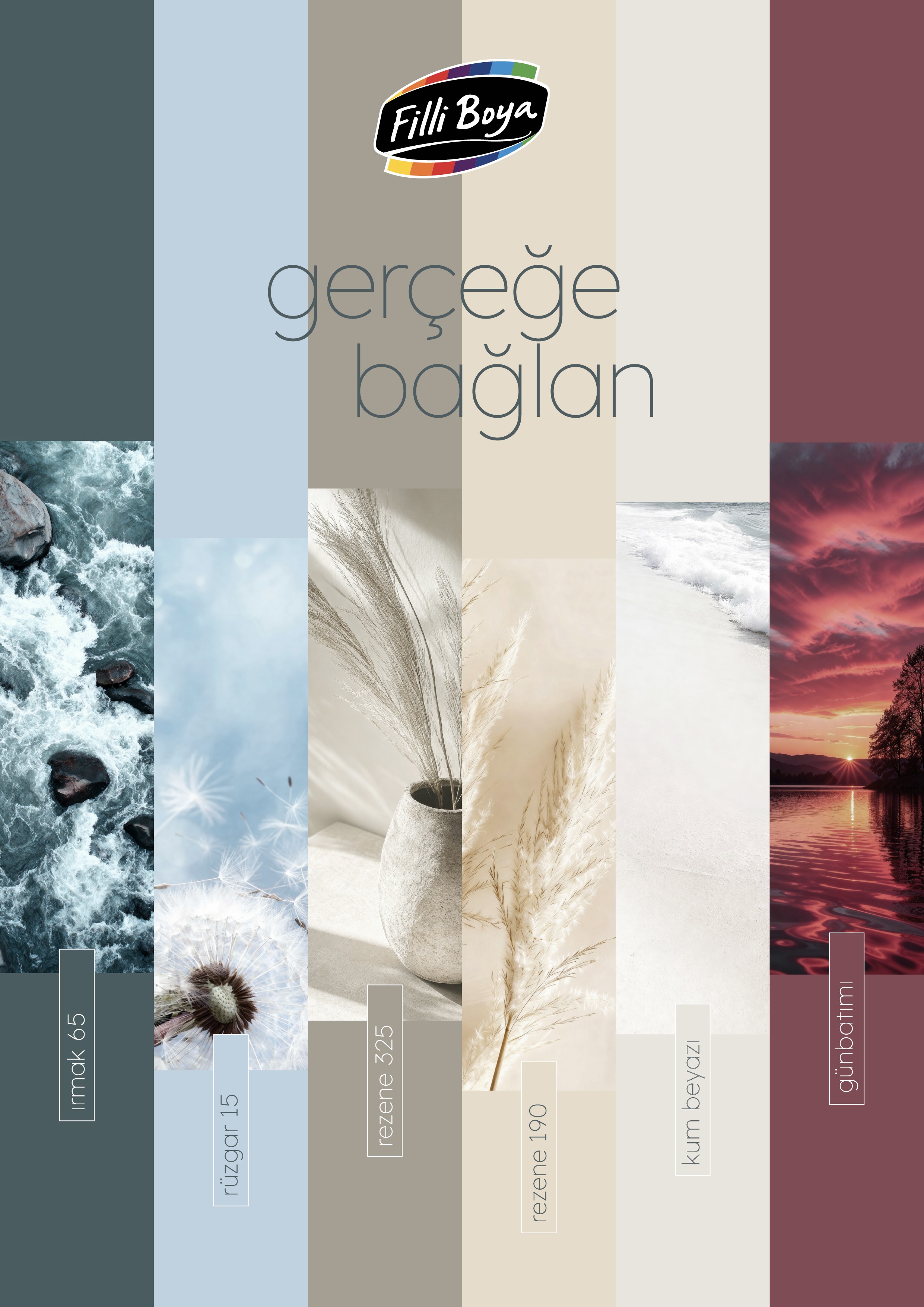 Filli Boya’nın 2026 paleti, yeni yılın anahtar rengi Irmak 65'i tamamlayan 5 renk daha içeriyor:
