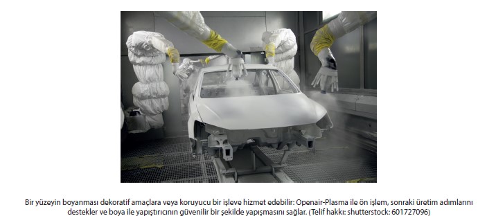 Yüzeyin Openair- Plasma ile işlenmesi, boyaların alt tabakaya başka türlü mümkün olmayacak bir yapışma seviyesine ulaşmasını sağlar.