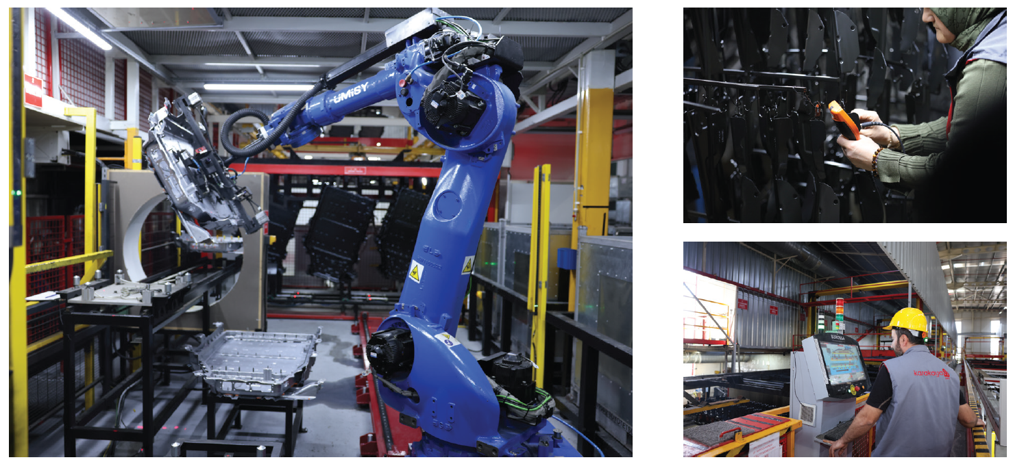 En büyük pazarımız otomotiv sektörüdür; amortisörlerden koltuk parçalarına, motor bileşenlerinden günümüzün trendi olan elektrikli araç batarya kasalarına kadar her şeyi kaplayabiliyoruz.