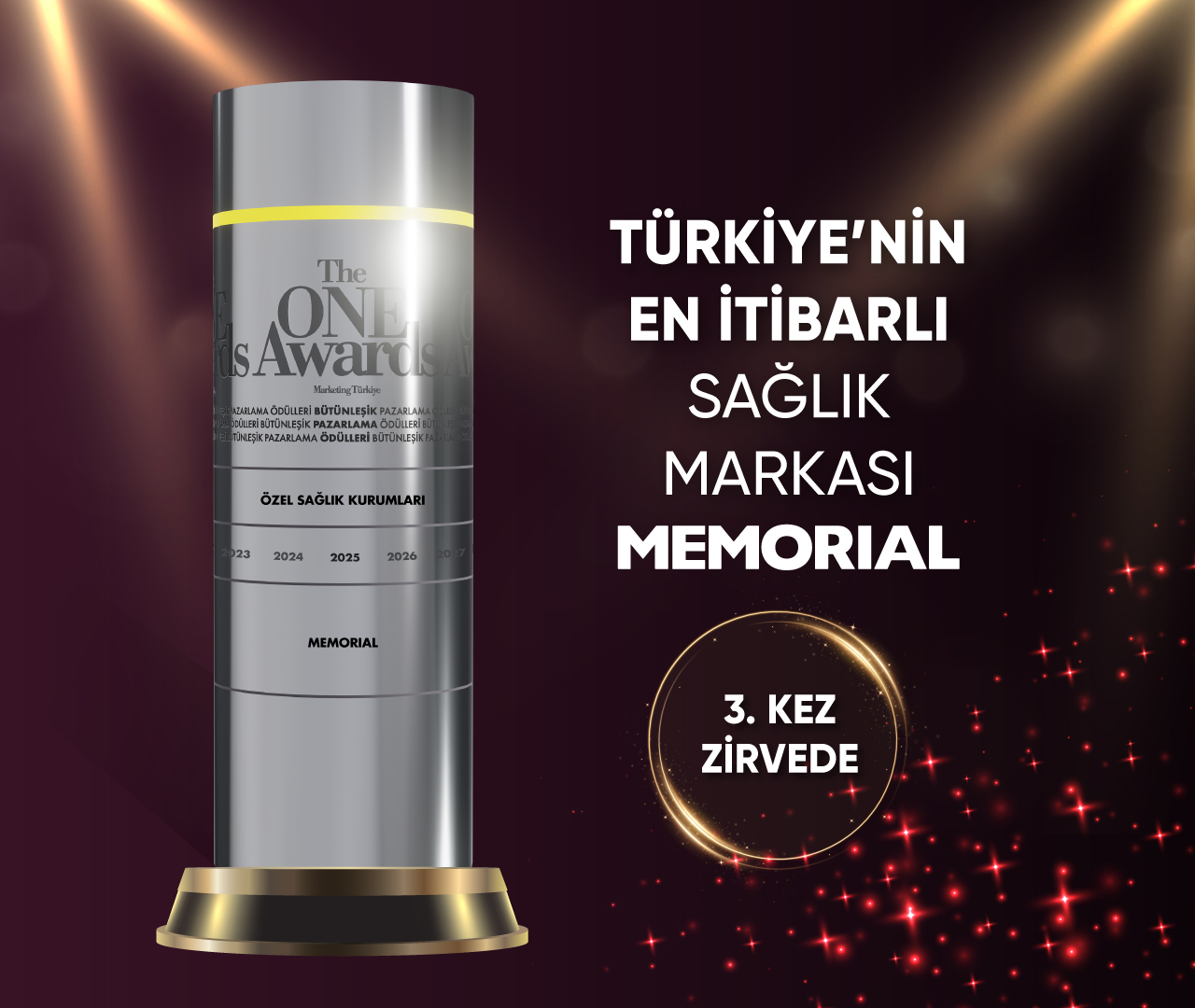 Memorial Sağlık Grubu, Marketing Türkiye ve Akademetre iş birliğiyle düzenlenen The ONE Awards Bütünleşik Pazarlama Ödülleri’nin özel sağlık kurumları kategorisinde, 3. kez “Yılın En İtibarlısı” seçildi. Memorial, 2025 yılında gösterdiği güçlü marka yönetimi, tutarlı iletişim yaklaşımı ve sürdürülebilir itibar performansıyla bir kez daha sağlık sektörünün lideri oldu.