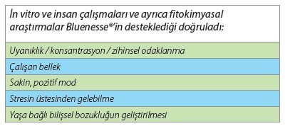 Tablo 1: Özet: Bluenesse® zihin sağlığına etkileri