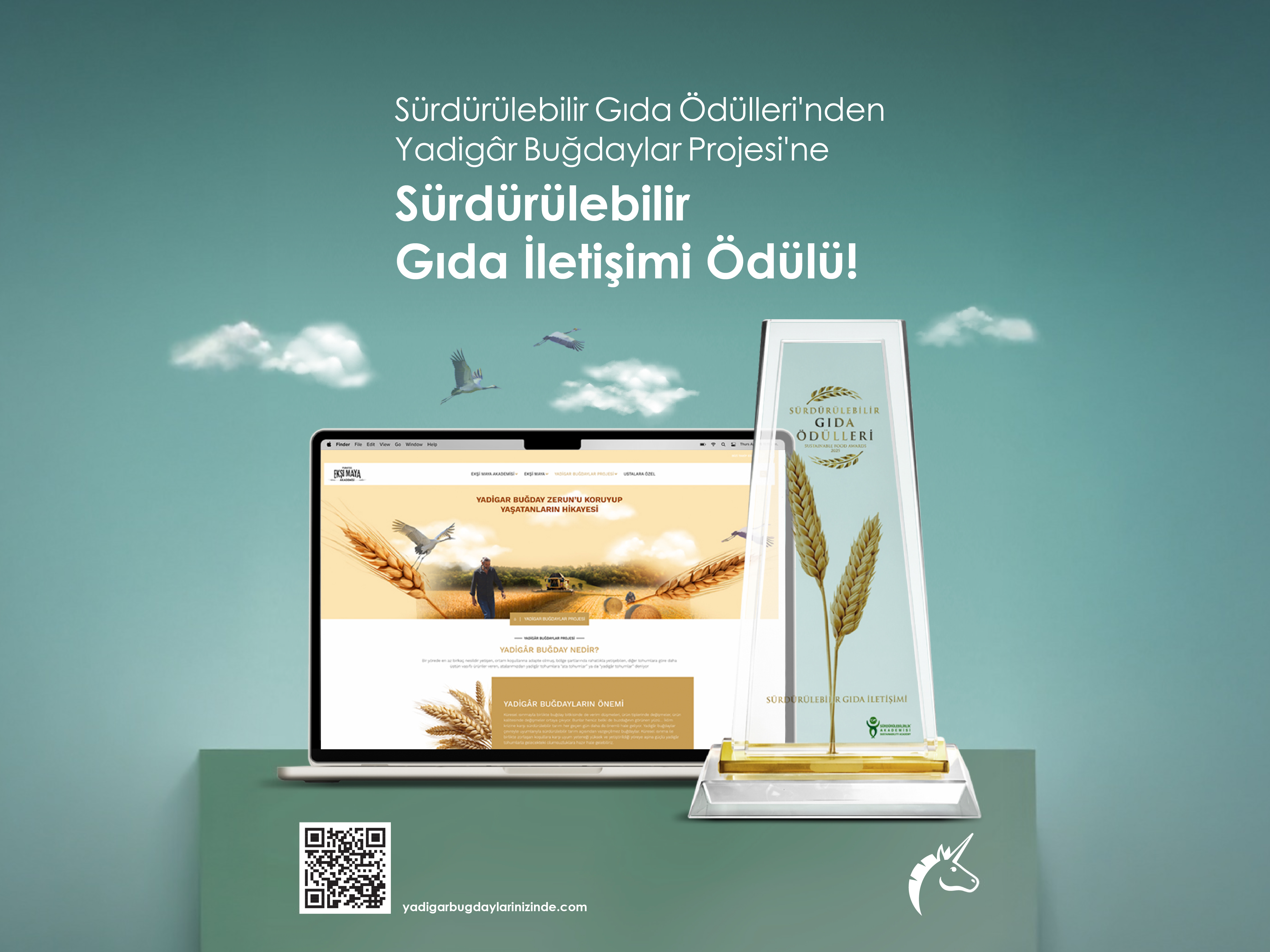 Gıda sistemlerinin uzun vadeli dayanıklılığını, yerel üretimi ve adil dönüşümü destekleyen projelerin ödüllendirildiği törende; Yadigâr Buğdaylar Projesi, Anadolu’nun yerel buğday mirasını bilimsel temellerle ele alan, dijital araçlarla geniş kitlelere ulaştıran ve güçlü bir anlatı dili kuran bütüncül iletişim yaklaşımıyla öne çıktı.