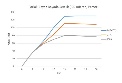 SYLFAT™ 2 TOFA ile elde edilen final sertlik derecesi- uzun yağ alkid boyasının içinde ayçiçeği yağ asidi (SFFA) ve soyafasulyesi yağ asidi (SOFA) ile elde edilen farklı boya formülasyonlarının sertlik performansına göre daha başarılıdır.