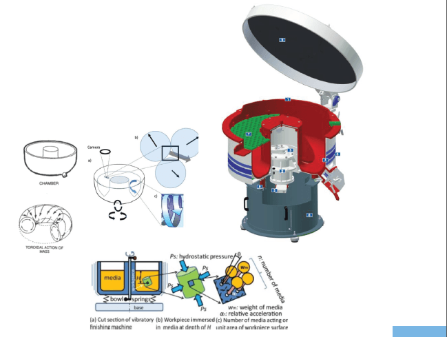 Balanssız yükleri ile belirlenen devirlerde dönerek vibrasyon oluşturan motoru vasıtasıyla, içinde bulunan parçaları hareket ettiren makinalardır. Vibrasyonlu yüzey işlemde aşındırıcılara titreşim ve dönme hareketleri ile enerji yüklenir. Bu enerji ile aşındırıcılar hareket eder ve parça yüzeyinde mikro taşlama etkisi yaratır. Hareketi kontrol eden birkaç önemli parametre vardır. Bunlar vibrasyon genliği (3-5mm), frekans ve dönme hızıdır.