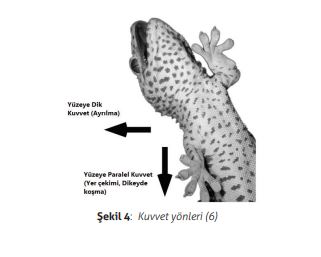 Yapışma Teknolojisine Doğadan İlham: Geckolar Tarihin derinliklerinde yapıştırma teknolojilerinin izlerini görmek mümkün. Biyolojik kaynaklı reçineler yardımıyla; av gereçleri yapılmış ve geliştirilmiş, günlük yaşam resmedilmiş ve basit tedavi yöntemleri uygulanmıştır. Yapıştırma ile birleştirmede ağaç reçineleri ve midyeler (Şekil 1); yüzey teknolojisi alanında da gecko olarak bilinen sürüngen ailesi önemli çalışmalara öncülük etmiştir.  Midyelerde Yapışma Yeteneği (1) Böcek, örümcek, kertenkele gibi birçok hayvanın gövde, ayak ve bacaklarında bulunan bağlama pedleri, çeşitli yüzeylere tutunma ve onlardan ayrılma yeteneğine sahiptir. Bu nedenle dikey duvarlarda ve tavanda dahi kolayca hareket ederler (2). Geckolar bu grup hayvanlar arasında en ağır kütleye sahip olmalarının yanı sıra, akıllı yapışma yeteneğine sahip tırmanıcı hayvanlar arasında en gelişmiş ve en karmaşık ayak yapısına sahiptir. Bu canlılar, ayaklarında 1mm²’de 14.000 adet sıklığında yaklaşık üç milyon mikro ölçekli kıl (seta) üzerinden uzayan yaklaşık üç milyar nano ölçekli spatulaya sahiptir (3).  Gecko Ayak Yapısı * Gecko ayaklarında bulunan setalar, iki yüzeydeki moleküller arasında çok sayıda zayıf çekim oluşturarak askıda kalmayı sağlar. Her bir kılcalın yüzey ile yaptığı bağları oluşturmak gibi koparmak da herhangi bir yapıştırıcı veya banttan farklı olarak kolay ve hızlı olarak gerçekleşir. Bu nedenle, bu canlının sahip olduğu doğal özelliğin yüzey teknolojilerine ilham verdiğini söyleyebiliriz.  Ayak Yapısı ve Setalar (Mikro kıllar) (5) Bilim insanları; silikon, plastik, karbon nanotüp ve diğer malzemleri kullanarak gecko benzeri yapışmayı yeniden yarattılar ancak bir ölçekleme sorunu ile karşılaştılar. Teoride yapışma gücü oldukça yüksek 3-6 milyon seta yaklaşık 130 kilogramlık bir kütleyi kaldırabilir. Ancak gerçek hayatta bir gecko ön ayaklarıyla sadece 2 kilogram yük taşıyabilmektedir. Stanford Üniversitesi araştırmacılarına göre ölçekleme sorunu yüklerin geniş yapıştırıcı alanları arasında düzgün bir şekilde dağılmaması gerçeğinden kaynaklanmaktadır. Örneğin gecko ayak parmaklarında, setaların yalnızca bir kısmı yüzeyle yakın temas halindedir ve temas halinde olmayanlar yükü kendi aralarında eşit olarak paylaşmazlar. Araştırmacılar bunun nedeninin, gecko derisinin, tıpkı bir lastik bant gibi üzerine daha fazla kuvvet uygulandığında gerilmesi ile daha sert hale gelmesi olabileceğini öne sürmektedir. Bir kertenkele duvara tırmandığında, setalar eşit olmayan bir şekilde gerilir ve bazılarına diğerlerinden daha fazla kuvvet uygulanır. Bu nedenle, bazı setalar yapışkanlıklarını maksimuma çıkarırken, diğerleri az kullanılır veya yüzeye hiç yapışmaz. Bu nedenle, araştırmacılar kuvvetleri daha eşit bir şekilde dağıtmaya odaklanarak, geckoda görülen prensipi baz alan bir yapıştırma sistemi geliştirme yoluna gitmişlerdir. Bilim insanları yapay gecko yapıştırıcılarını oluşturmak için sürüngenin setalarını taklit eden silikon mikro takozlar ile işe başlamışlardır. Bunları, her biri yüz binlerce mikro dilim içeren 24 adet pul büyüklüğünde karo şeklinde birleştirmişlerdir. Ardından karolar, tendon benzeri iplerle yaylara bağlanarak sekizgen şekilli bir plakaya tutturulmuştur. Gecko derisinden farklı olarak, yaylar belirli bir eşiğin üzerine gerildikten sonra karolara aynı kuvveti uygulayarak yükleri karolar arasında eşit olarak dağıtmaktadır. Bu geliştirme çalışması, yüzeye monte edilen yamanın, bir milimetre kareden insan eline kadar olan boyutları için benzer bir yapışkanlık gücü sunmasını sağlamıştır. Tek bir karo soyulsa bile, taşıdığı ağırlık, yayların eşiği geçmediği en hafif yüklere sahip karolara aktarılır, böylece genel sistem yapışkan kalır. Kuvvet yönleri (6) Polipropilen bazlı yapay gecko yapıştırıcılarının, ilham kaynağı kabul ettiği bu canlının doğal olarak sahip olduğu yapışma özellikleri ile ilişkilendirildiği 7 parametre aşağıdaki gibidir: 1. Yönlü Bağlantı: Setalar yüzeye bastırılarak yapışmazlar, bunun yerine liflerin karşıya tutunabilmesi için yüzeye paralel bir kayma davranışı gereklidir. 2. Yüksek Ön Yük/Çekme Oranı: 0,1 Newton’dan daha az bir ön yük, lifleri birbirine bağlamak için yeterlidir ve ön yük kaldırıldıktan sonra her bir 4 Newton’luk bir kesme yükünü kaldırabilir. 3. Düşük Ayırma Kuvveti: Polipropilen bazlı gecko yapıştırıcı yönlüdür ve yüzeye paralel yönde yapışma gösterir. Ancak 0,001 Newton’dan daha az bir kuvvetle de kolayca çıkarılabilir. 4. Ayrışma: Polipropilen mikrolifler birbirine yapışmaz ve uzun yükleme/bırakma, döngüsünde bile topaklanma yapmaz. 5. Durağan Halde Yapışkan Olmayan Durum: Sentetik yapıştırıcıda kullanılan polimer olan polipropilen, neredeyse geckonun keratin yapısı kadar serttir ve yamanın yüzeyi durağan halinde yapışkan değildir. 6. Topografyadan Bağımsızlık: Zorlu yüzeylere yapışabilir. 7. Kendi Kendini Temizleme: Çalışmalar devam etmektedir. Stanford Üniversitesi araştırmacıları Biyomimetik ve Becerikli Manipülasyon Laboratuvarı’nda FarmHand (Çiftlik Eli) adlı bir robotik sistem geliştirmişlerdir. Testlerde başarıyla taşınabilen malzemeler arasında; çiğ yumurtalar, üzüm salkımları, tabaklar, sıvı kapları, basketbol topları ve taşlama motoru dahi bulunmaktadır. : Geckodan ilham alınan robotik tutucu Gecko yapıştırıcıyı bu çok parmaklı, antropomorfik tutucuda kullanmak zorlu olmakla beraber, FarmHand’in parmaklarını kontrol eden tendonlara ve yapıştırıcının altındaki parmak pedlerinin tasarımına özel dikkat gösterilmesini gerektirmekte
