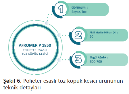 Reaksiyon Afromer® serisi polieter esaslı toz köpük kesici teknik detayları Şekil 6’da verilmiştir.