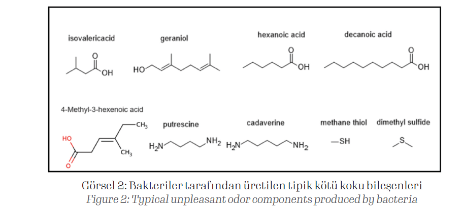 Bakteriler tarafından üretilen tipik koku bileşenleri: