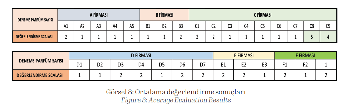 Bu sonuca göre, C firmasından tedarik edilen 2 adet parfüm başarılı bulunmuştur. Bu çalışmanın sonuçları ve yöntemi parfüm firmaları ile paylaşılıp kötü koku önleme çalışmalarına yardımcı olmuştur.