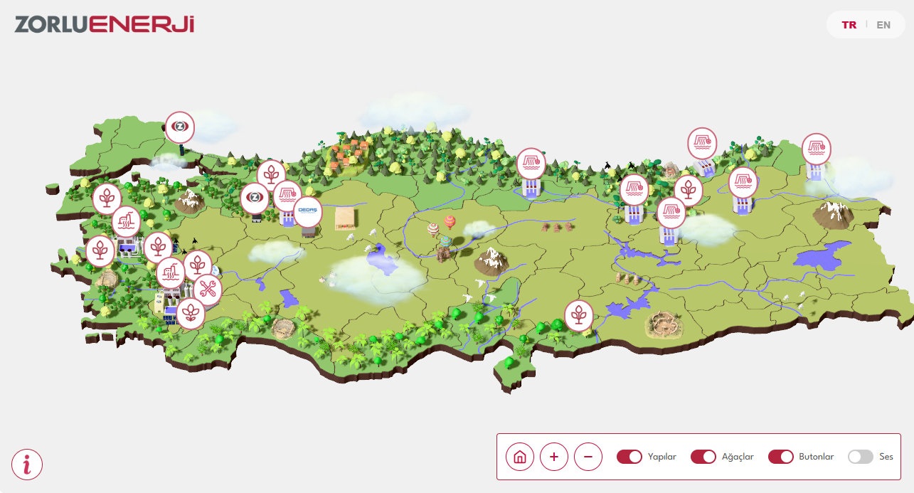 Şirket, sürdürülebilirlik çalışmalarını dijital deneyimlerle de destekliyor. 3D İnteraktif Enerji Haritası ile yenilenebilir enerji portföyünü Türkiye haritası üzerinde etkileşimli şekilde sunan Zorlu Enerji, çevresel ve sosyal etkilerini daha erişilebilir hale getiriyor.